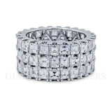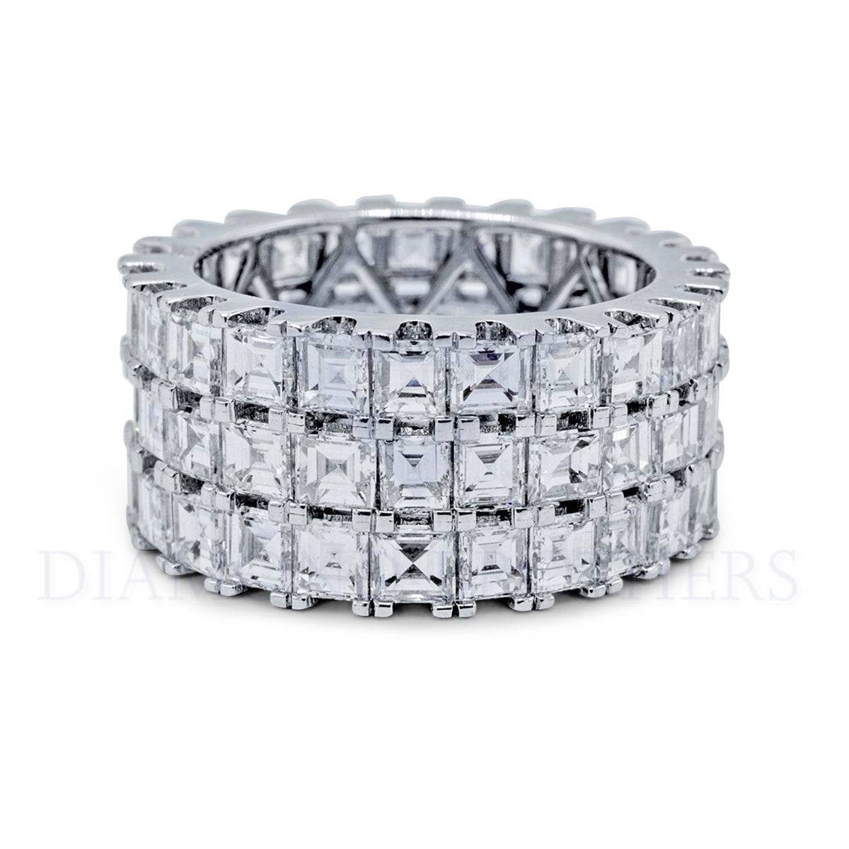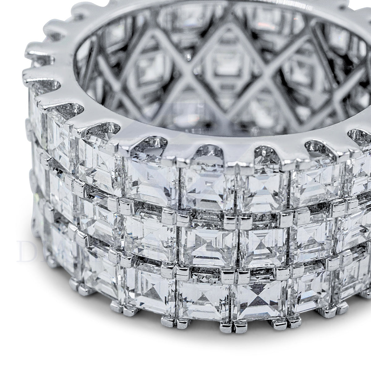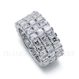 Custom 18k White Gold 3 Row 12tcw Asscher Cut Diamond Wide Band Ring