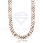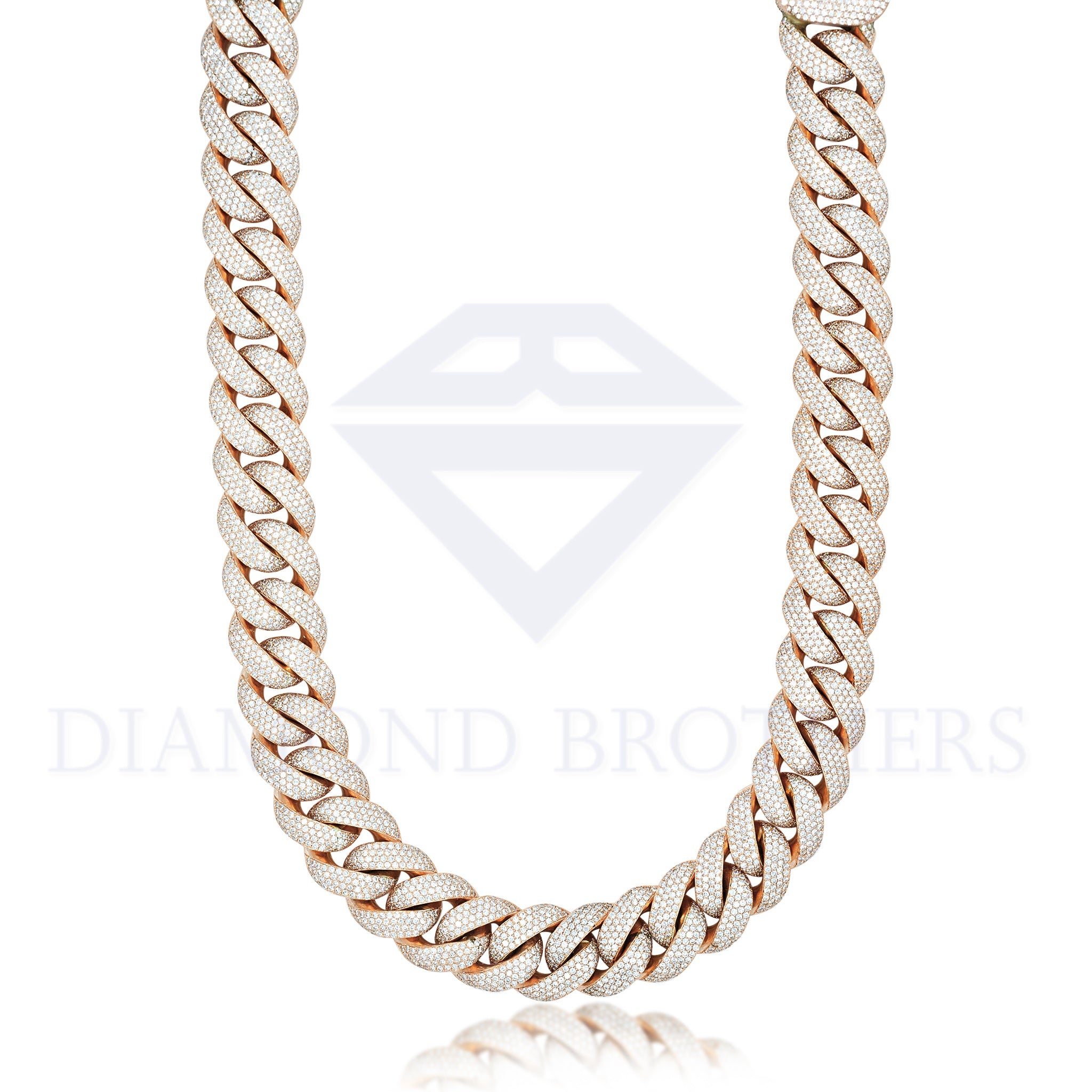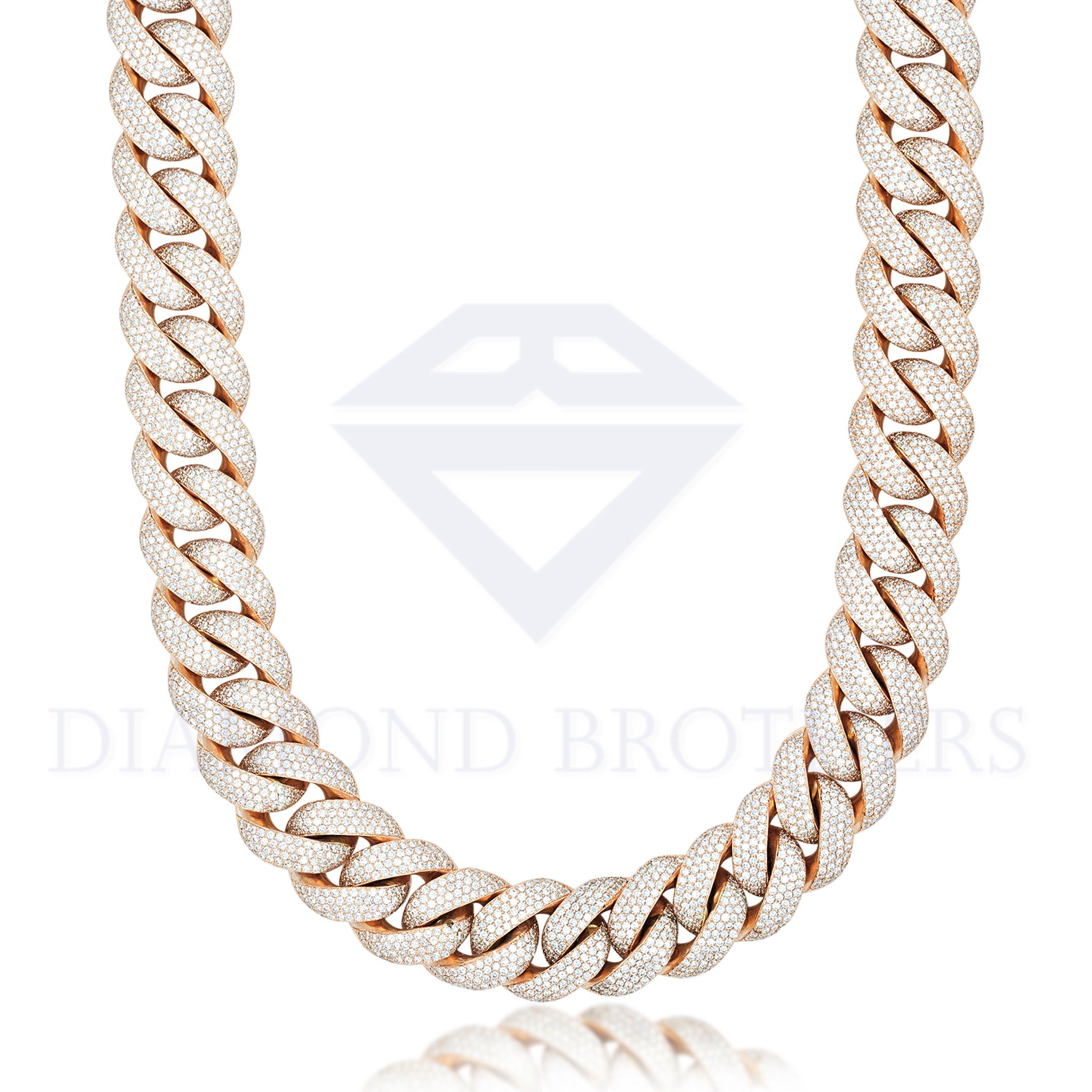 Custom Large 14k Rose Gold Micropave Honey Comb Setting VS 60tcw Round Diamond 21mm Miami Cuban Necklace With Custom Diamond Lock 21" Long