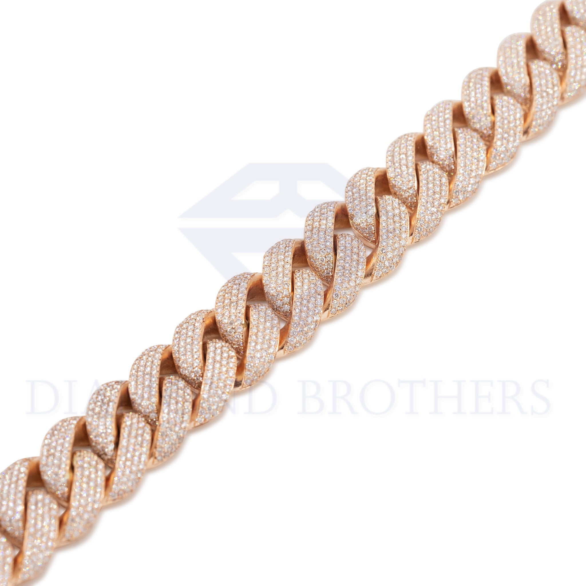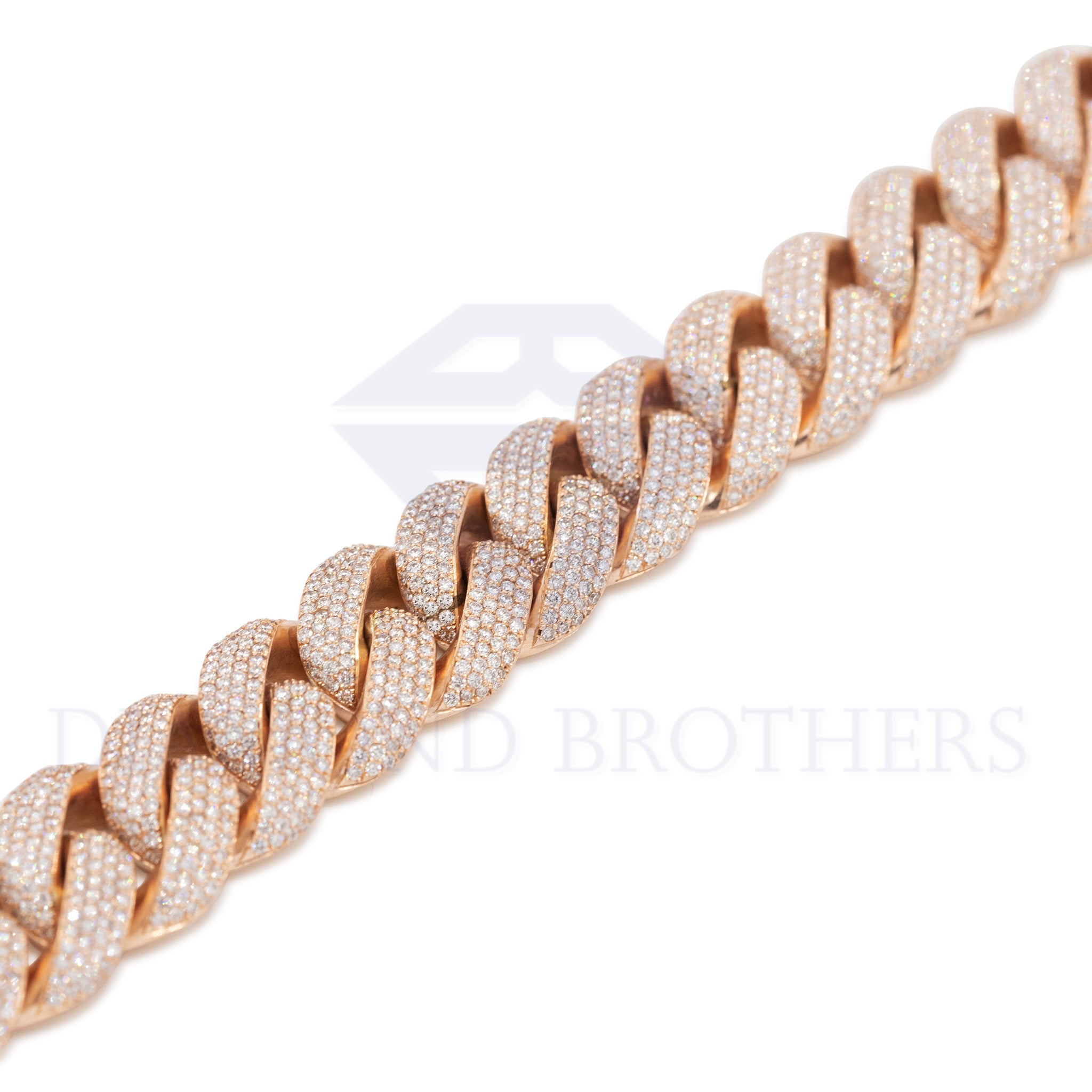 14k Rose Gold Micropave Honey Comb Setting VS 60tcw Round Diamond 21mm Miami Cuban Handmade Necklace With Custom Diamond Lock 21" Long