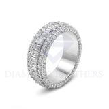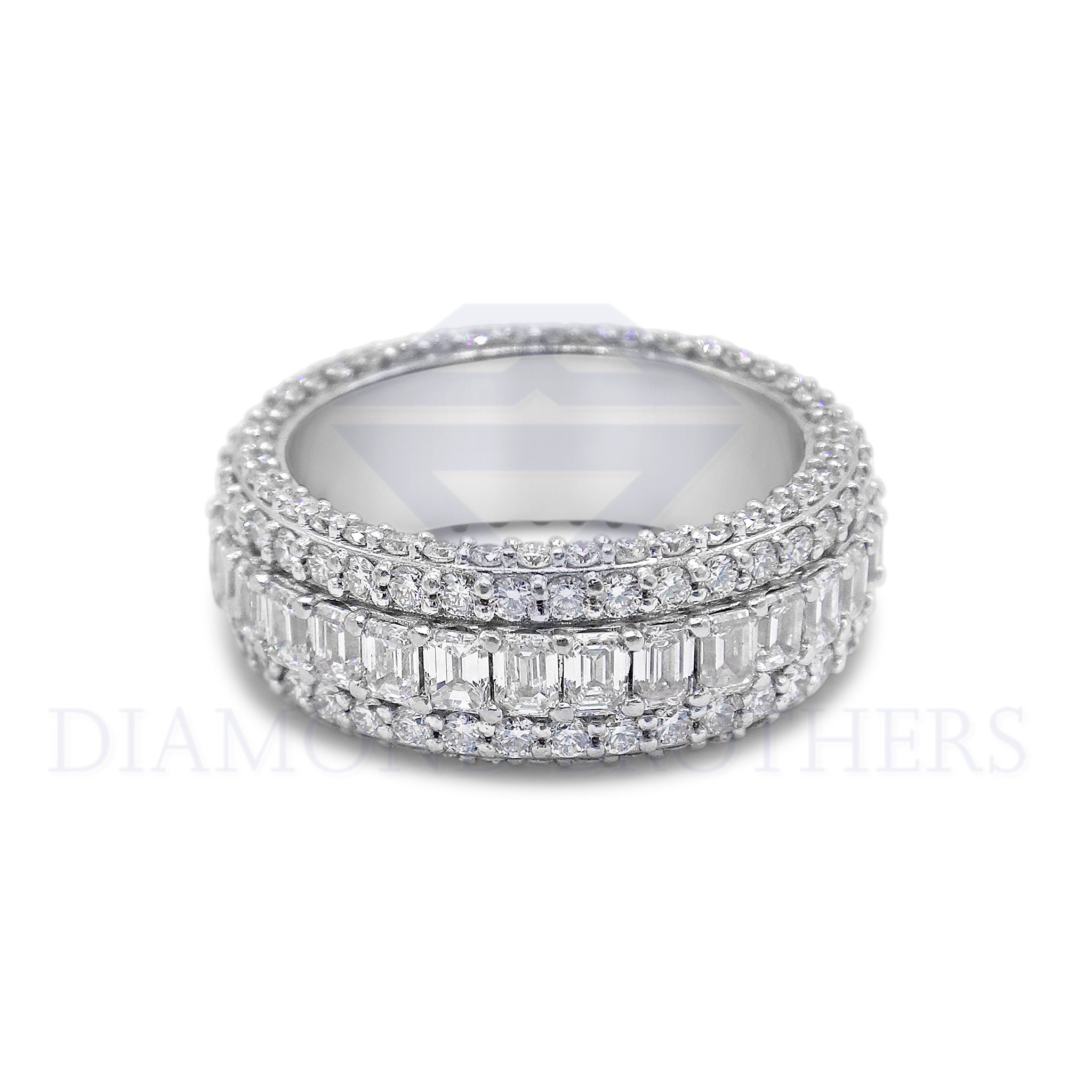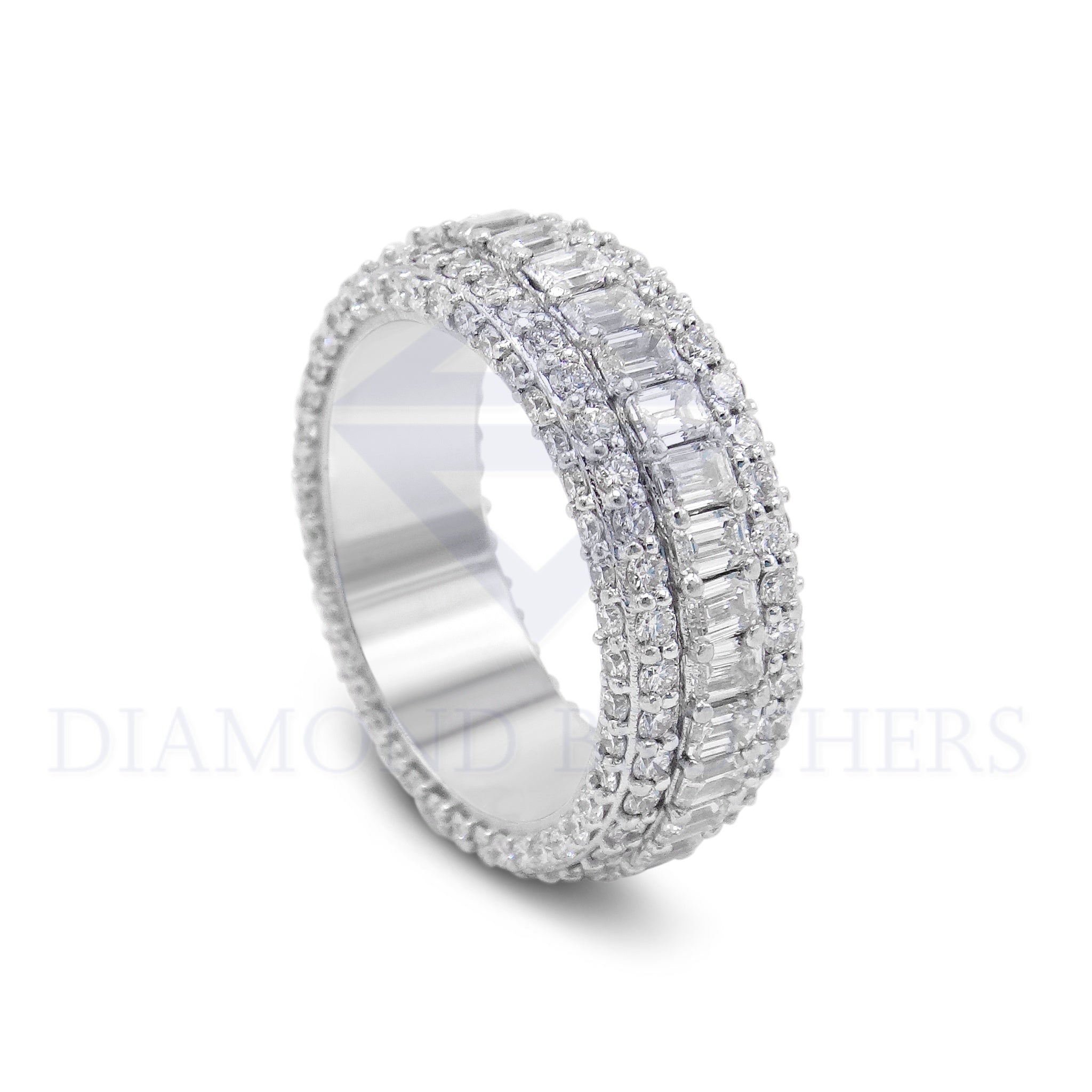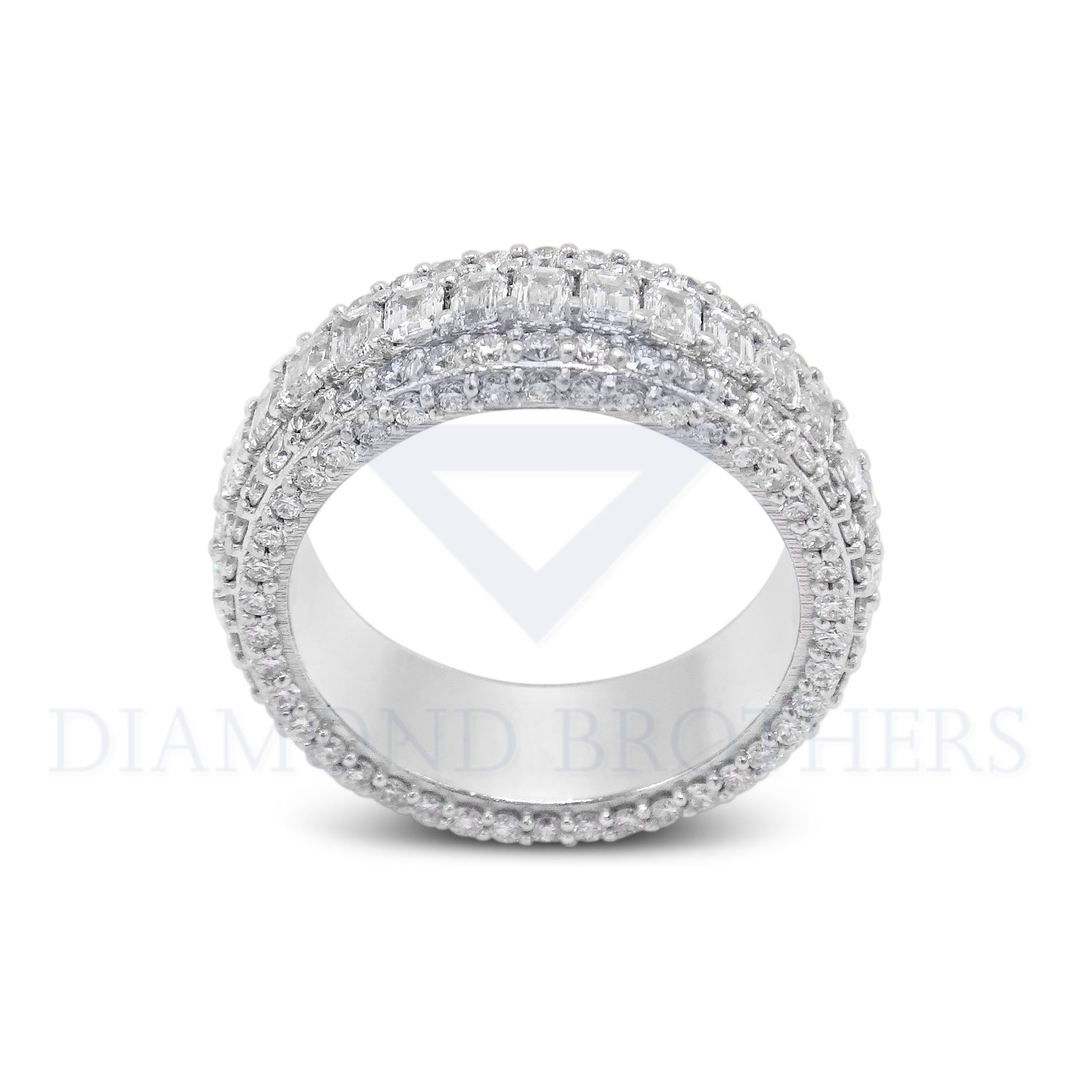 Custom 18k White Gold Apx 6tcw Round & VVS Emerald Cut Diamond 8mm Band Handmade Mens Ring