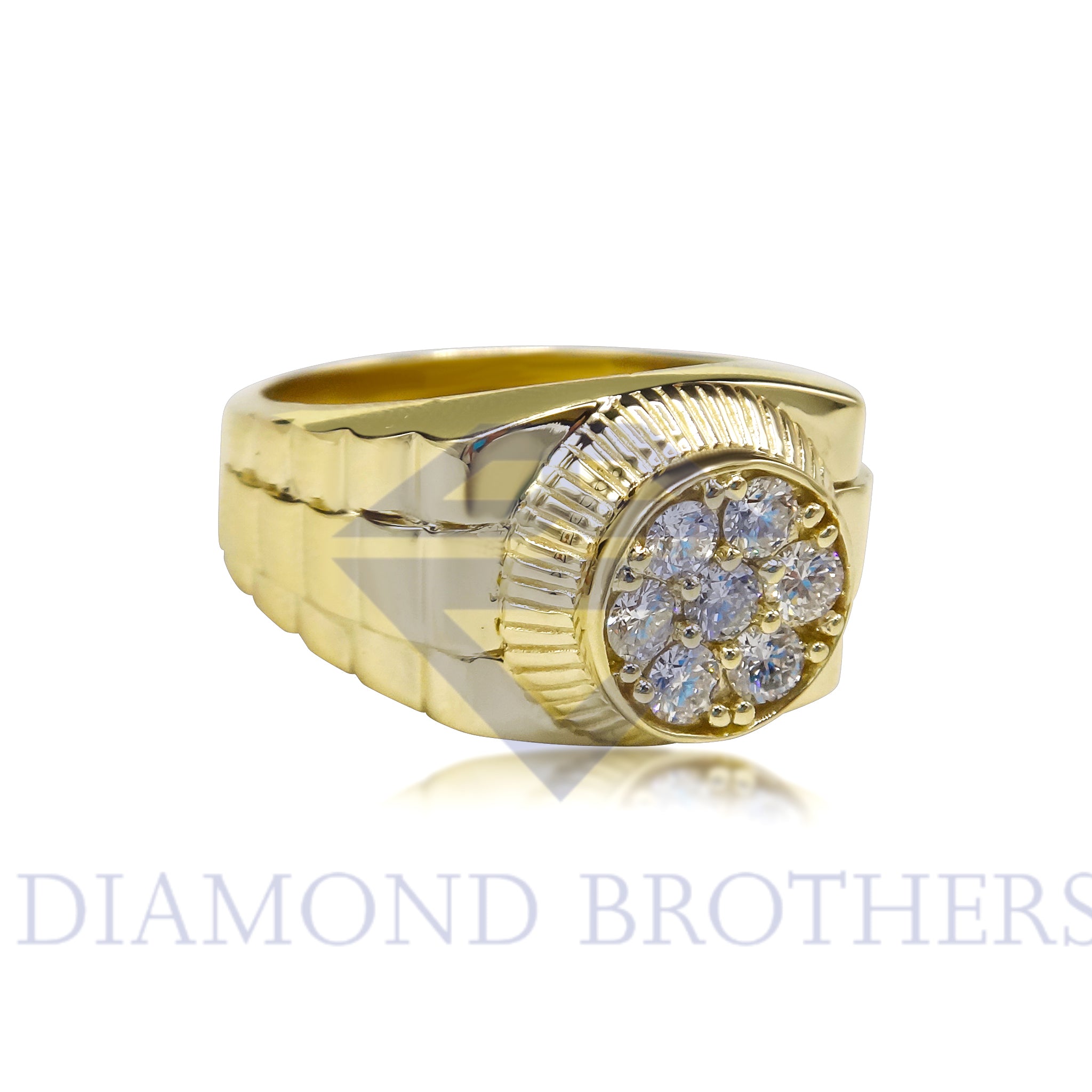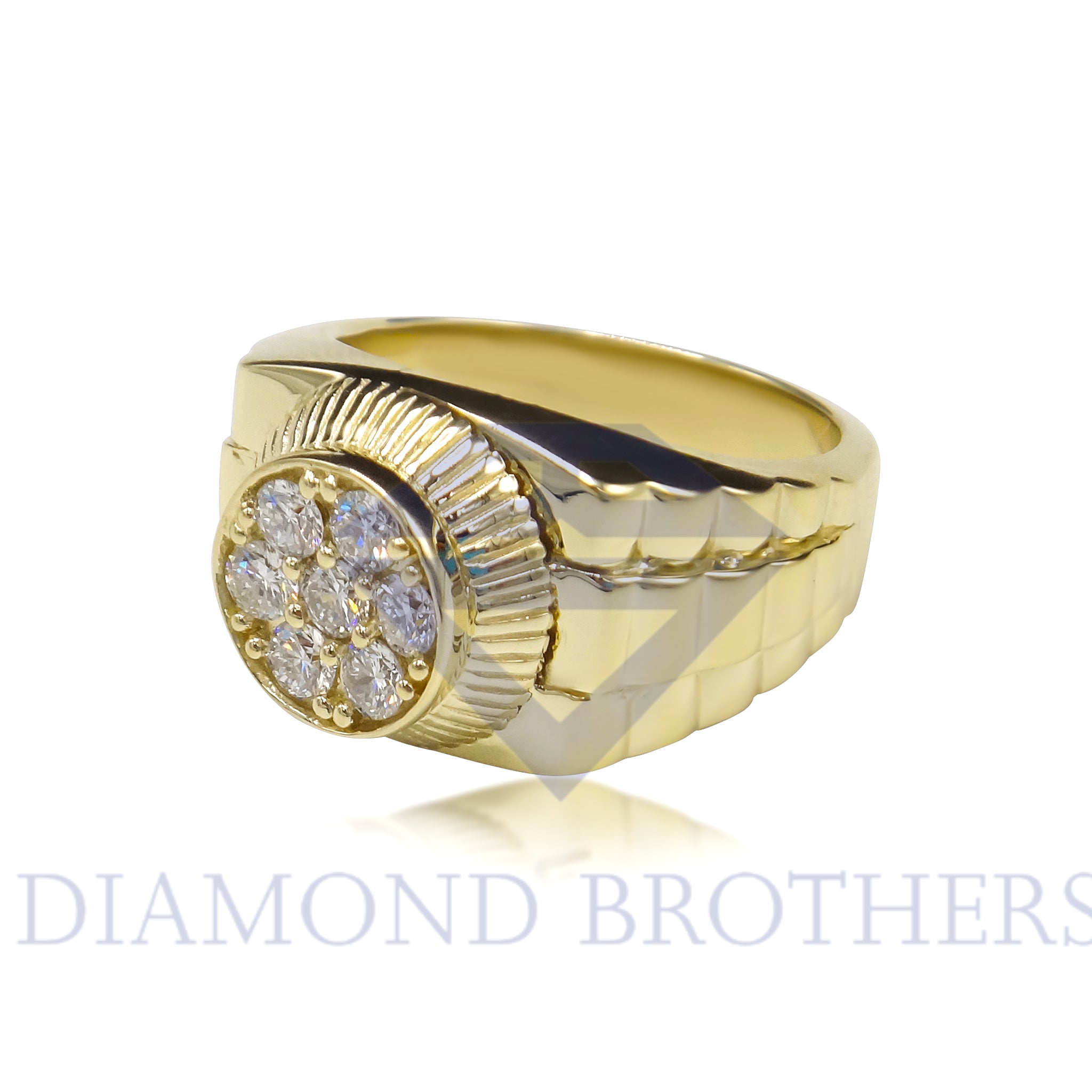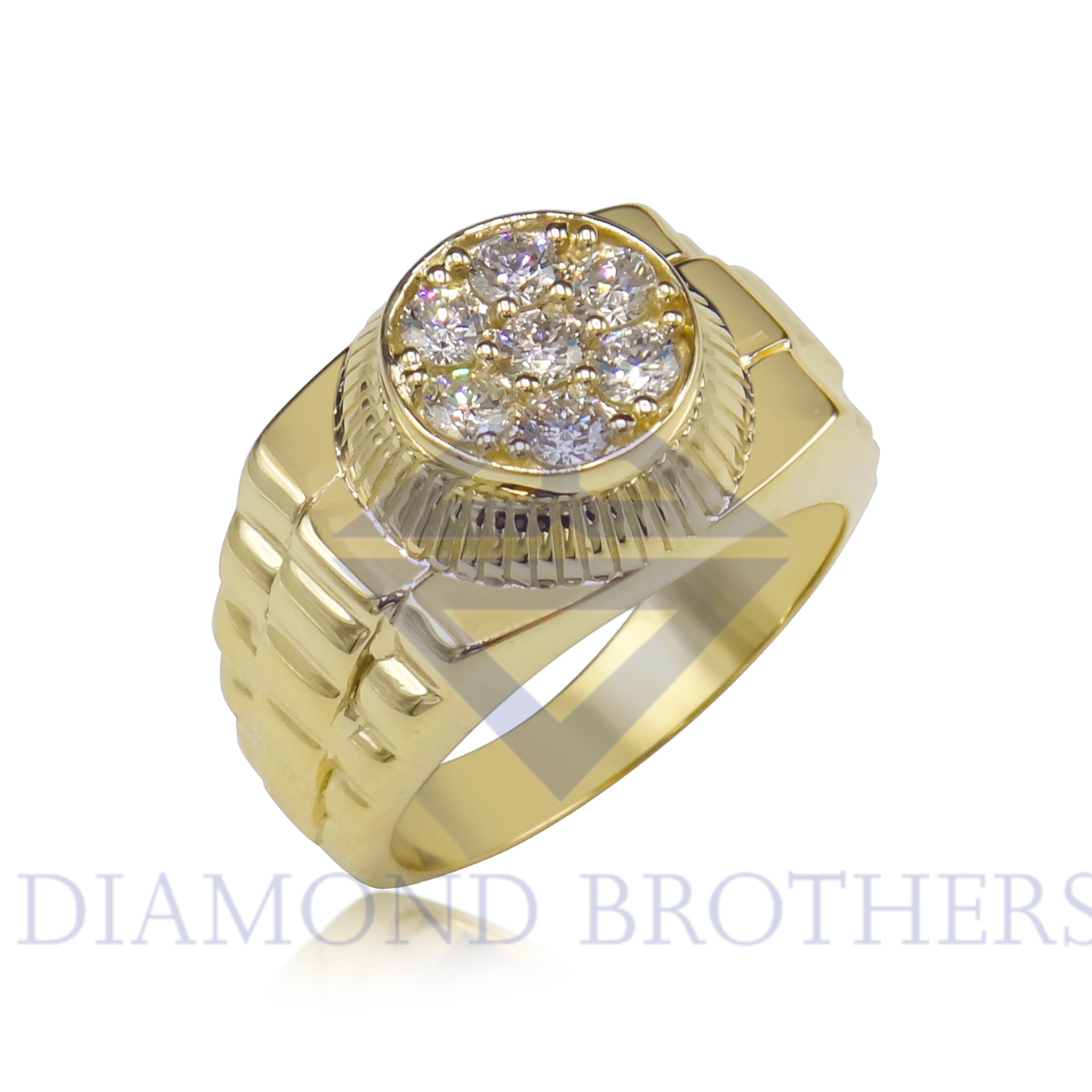 Custom 14k Yellow Gold Cluster 1tcw Diamond Rolex Style Mens Ring