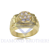 Custom 14k Yellow Gold Cluster Diamond Rolex Style Mens Ring