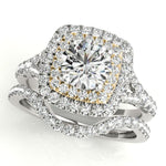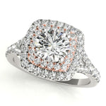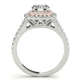 14k Gold 1 1/2 ct tw Double Halo Round Diamond Engagement Ring F VS Diamonds GIA Center Stone