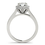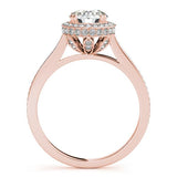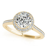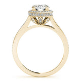 14k Gold 1.75 ct tw Diamond Halo Cathedral Custom Engagement Ring with F Color VS Clarity Diamonds.