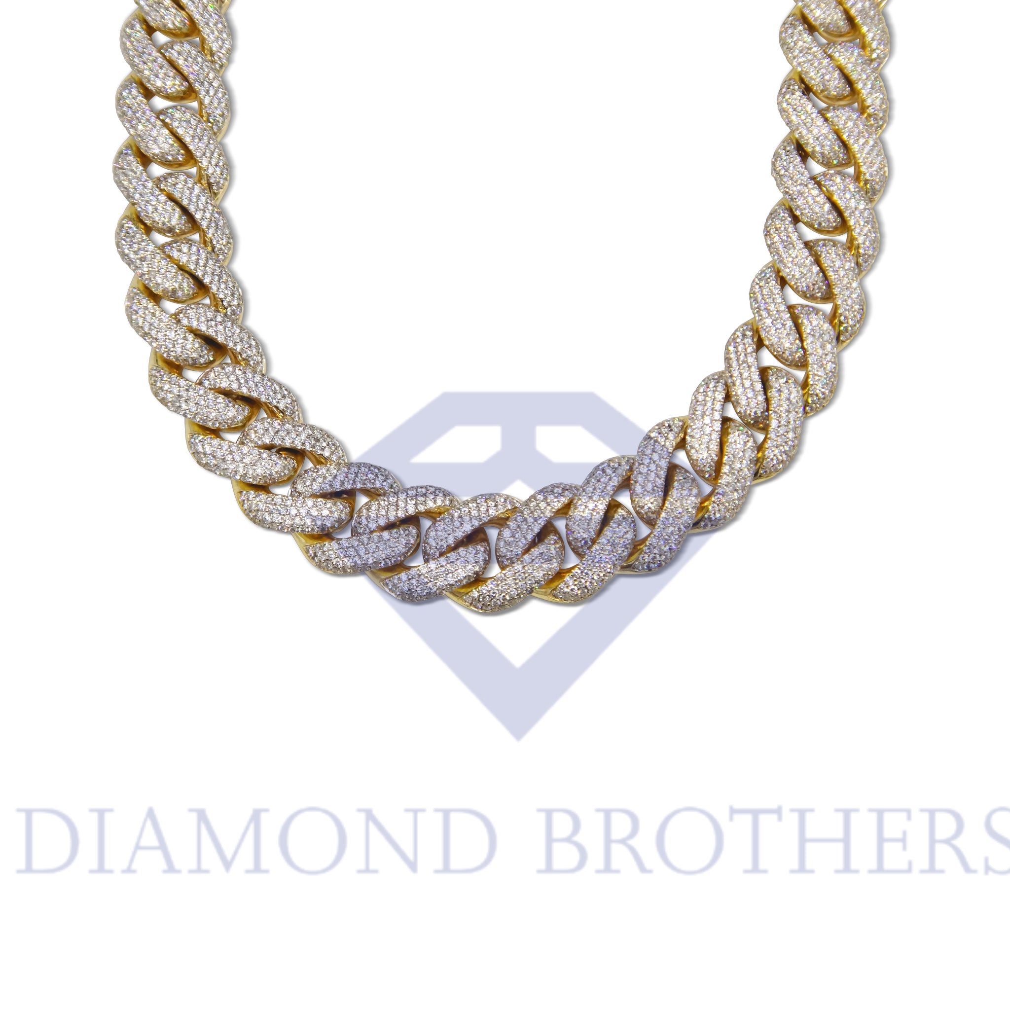 Custom 14k Yellow Gold Hand Set Micro Pave 80cts VVS Diamond 18mm Cuban necklace 24"